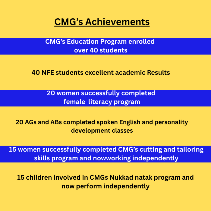 Change Makers Group (CMG) is a registered NGO founded by social workers to support marginalized communities lacking education, health, and employment opportunities.